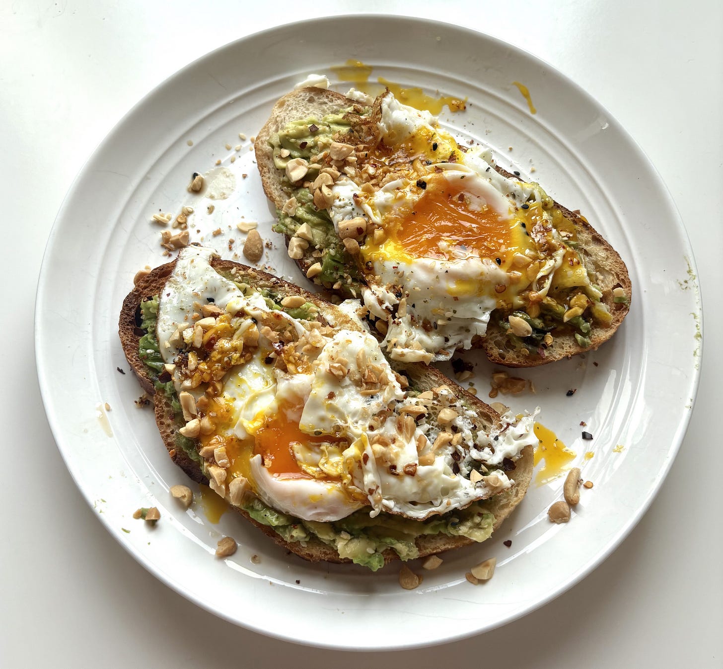 I made a lot of Asian-inspired avocado toast these last few weeks, for some reason. It’s fun to just put fish sauce and peanuts on things. If I had cilantro I would have used that too.